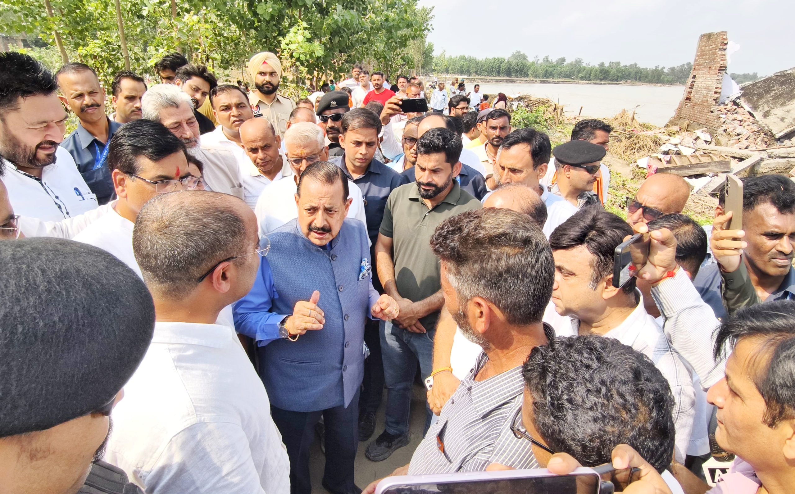 During today’s visit to the flood-hit villages of Pathankot, Union Minister Dr Jitendra Singh was accompanied by the officers from PWD, R&B, PHE and agriculture led Deputy Commissioner Aditya Uppal and SSP, Daljinder Singh Dhillon.