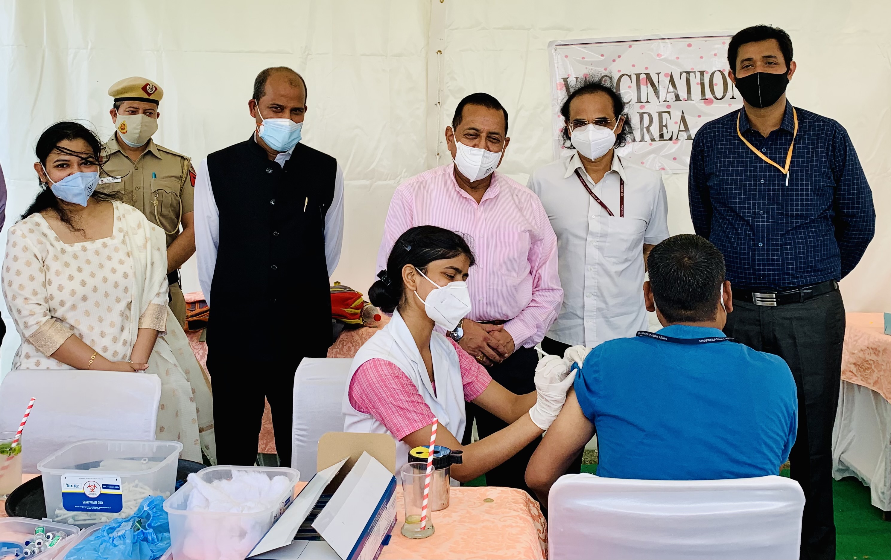 Dr Jitendra visits special Vaccination Camp for employees, their families