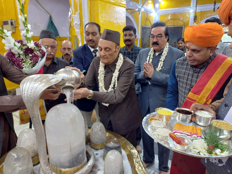 Dr Karan Singh performed Pooja of Lord Shiva at Ranbireshwar Temple and went through the Temple complex to enquire about the facilities being provided to the devotees. He expressed satisfaction over the facilities and gave necessary instructions on the spot.