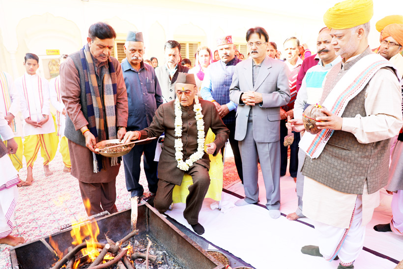 Dr Karan Singh, Chairman, J&K Dharmarth Trust, offering ‘Ahuti’ in the Hawan performed at Shree Raghunath temple complex in Jammu.