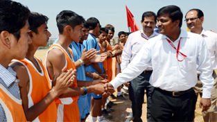 Dr M K Kumar, Additional CEO SMVDSB being introduced with the participating players during Invitational Volleyball Championship at Katra.