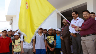 Dr Mandeep K Bhandari, CEO SMVDSB and Ashok Kumar, Director Sports SMVDSB flagging off trekkers on Wednesday.