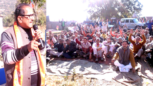 Dr Nirmal Singh, BJP candidate addressing an election rally in Billawar on Thursday.          -Excelsior/ Madan