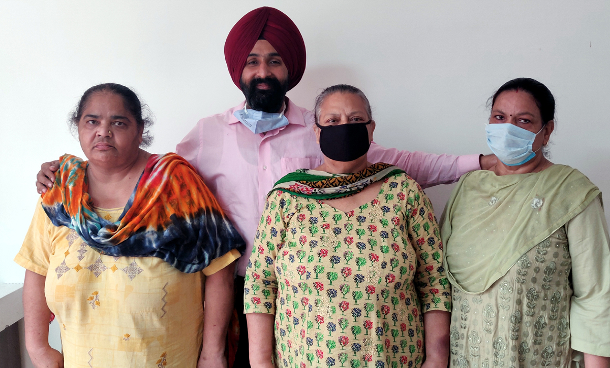 Dr. Ranjit Singh, Senior Joint Replacement Surgeon posing for a photograph with patients on whom he performed knee surgery flawlessly.