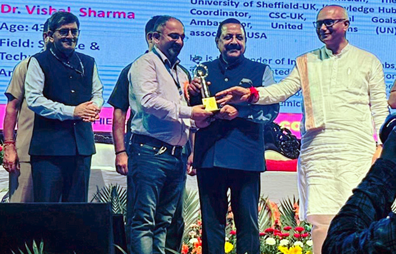 Son of Kanta Devi and late Shruti Pal Sharma, Dr Sharma, who hails from Basohli, District Kathua, was presented with the remarkable honour by Dr Jitendra Singh, MoS in PMO, for his exceptional contributions at both national and international levels in the field of Science and Technology.