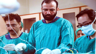 Dr Wataru Nagamatsu from Japan and Dr Sushil K Sharma, HoD Cardiology, GMC Jammu performing a procedure at Cardiology Department on Monday