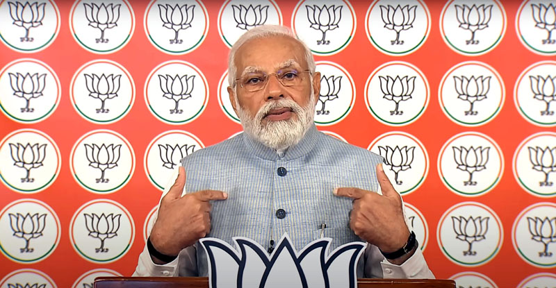 Prime Minister Narendra Modi delivers a video message for the people of Karnataka ahead of the Karnataka Assembly elections, on Tuesday. (UNI)