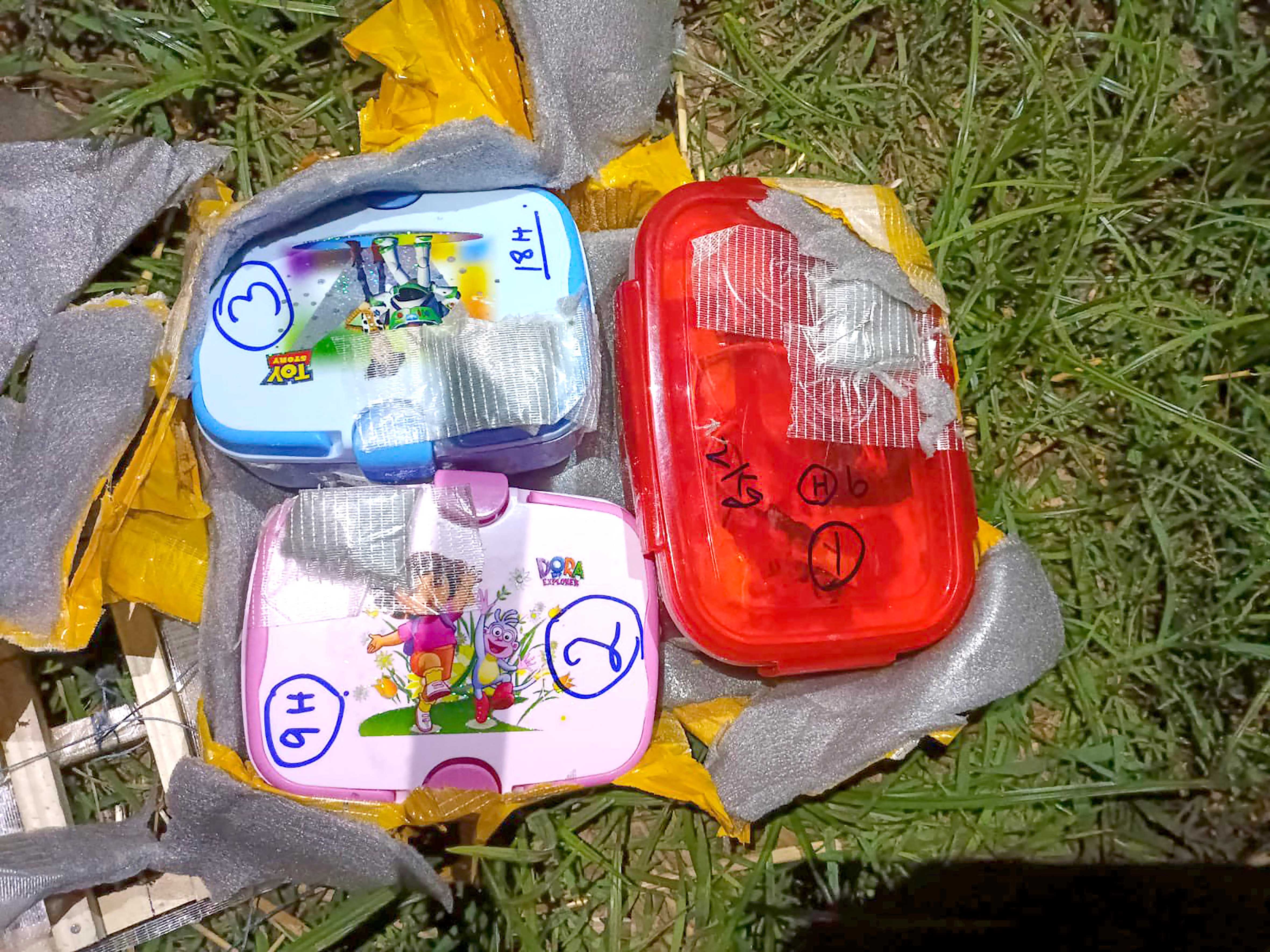 The IEDs, with their timers set and packed inside tiffin boxes, were recovered from the Kantowala-Dayaran area of Kanachak in the Akhnoor sector, Additional Director General of Police (ADGP), Jammu, Mukesh Singh said.