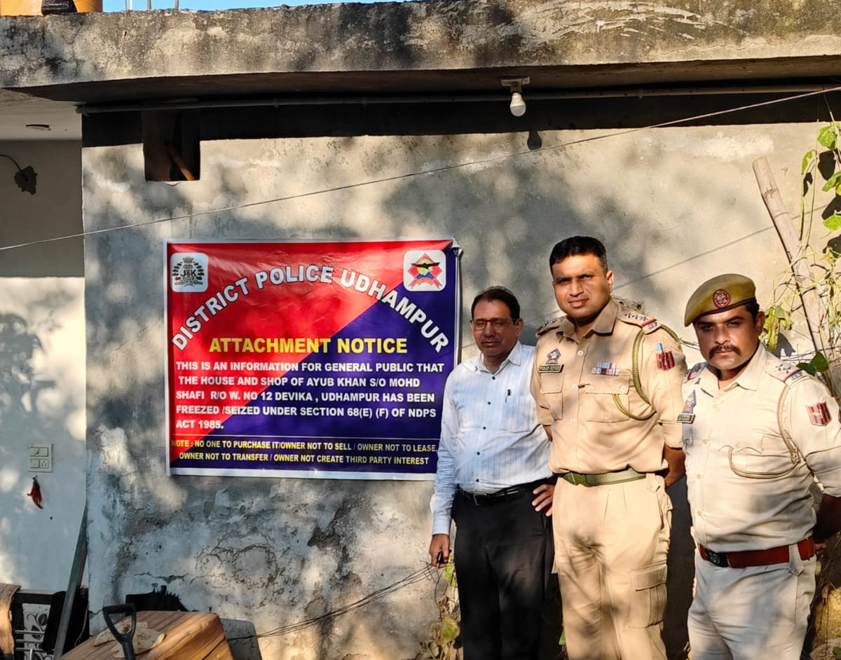 Jammu, Oct 11: Jammu and Kashmir Police on Saturday attached movable and immovable property worth over Rs 2 crore of an alleged drug peddler in Udhampur district, an official said.