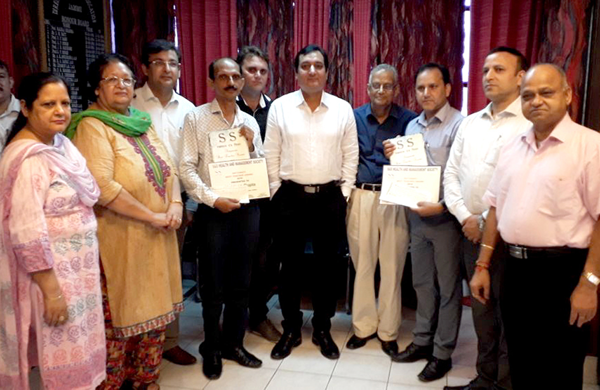 Recipients of Satyawati Awards for Best Teachers posing with DSEJ, Rakesh Kumar Srangal and members of S&S Health and Management Society.