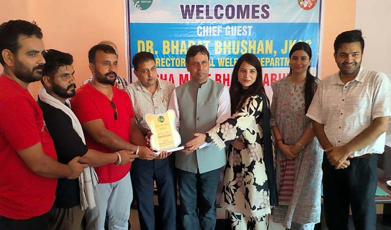 DSW Jammu, Dr Bharat Bhushan, honouring an NGO working against drug abuse in Kathua on Wednesday. By Daily Excelsior - July 24, 2024 Share FacebookTwitterWhatsAppPinterestLinkedinCopy URLTelegramEmailTumblrReddItPrintKoo DSW Jammu, Dr Bharat Bhushan, honouring an NGO working against drug abuse in Kathua on Wednesday. DSW Jammu, Dr Bharat Bhushan, honouring an NGO working against drug abuse in Kathua on Wednesday. Follow our WhatsApp channel