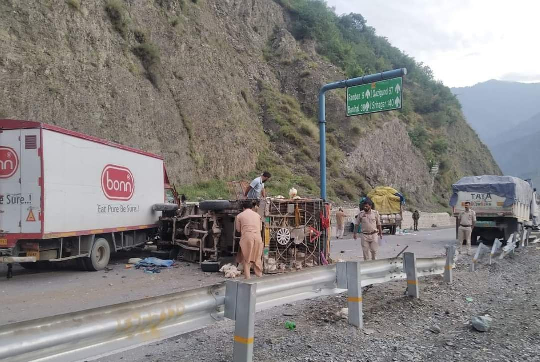 The officials said the dumper was coming from the Jammu side when its driver lost control apparently due to overspeeding and hit seven vehicles before coming to a halt.