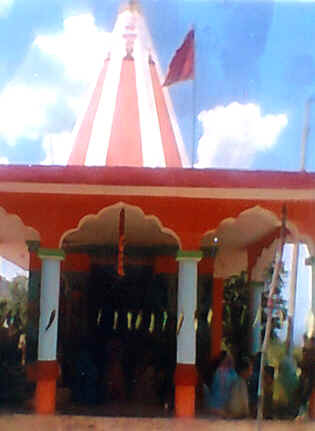 It is believed that this temple was constructed in the sixteenth century. But there is no evidence about it. It was built with stones and its height was only 12 feet. Now it has been reconstructed and renovated without displacing the original idols of Maa Durga. It has three idols carved on flat stones and have been fixed on the uplifted base. These were built by an expert architect with great care. There three are the idols of Mahakali, Mahaluxmi and Maharaswati. While reconstructing the temple, these idols were not disturbed including the base. These are in the original position, shape and size. The temple has been erected to a significant height with Parikarma attached to it. These carved idols are now painted with different colours making them more attractive. These were painted by a Sadhu with suitable colours, he came here and stayed for few months. He was a good painter as well. He may be a painter turned sadhu. He also painted the pictures of Mahalaxmi and the lion of Maa Durga on the walls of the temple in addition to other paintings.