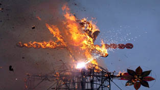 JAMMU, Oct 3: Dussehra marking the victory of good over evil was celebrated with full religious fervour and gaiety across the Jammu region today. The functions were organized at different places in the region where the effigies of demon King Ravan, his brother Kumbkaran and son Meghnath were torched.