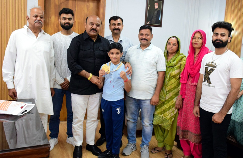 JAMMU, June 5: Deputy Chief Minister, Surinder Choudhary, today met a young budding Wushu Champion, Geenakshi Mehra, who brought laurels to J&K by winning gold medal in the National Wushu Championship.