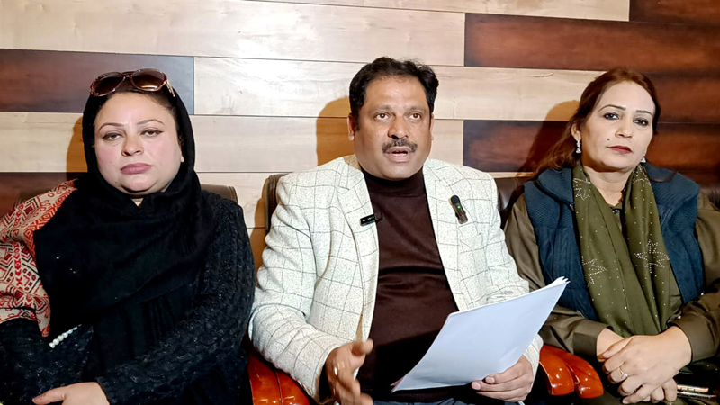 Deputy Mayor Pervaiz Qadri alongwith other corporators during a press conference in Srinagar on Saturday. -Excelsior/Shakeel