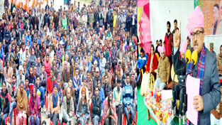DyCM, Dr Nirmal Singh addressing a public gathering at Bani on Monday.