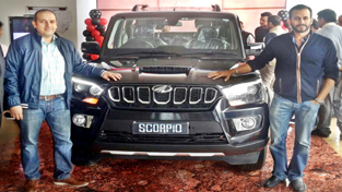 Officials of Astro India Private Limited during the launch of new generation Scorpio at Jammu.