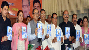 DyCM, Dr Nirmal Singh flanked by MoS Education, Priya Sethi and others releasing a book at Jammu on Sunday.