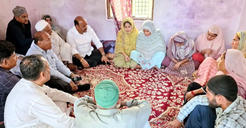 JAMMU, May 17: Dy Chief Minister Surinder Choudhary, accompanied by Provincial president of National Conference Rattan Lal Gupta (Adv), today visited Khari Chinore area of Jammu North Assembly Constituency to express condolences over the tragic death of Zakir Hussain, who was killed in a mortar shell attack from across the border during the recent India-Pakistan conflict.