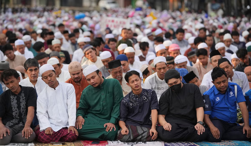 In Indonesia’s capital, Jakarta, Muslim worshippers were shoulder-to-shoulder in the streets and the Istiqlal Grand Mosque was filled for morning prayers Friday.