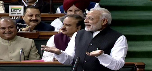 Replying to a debate in Lok Sabha on the Motion of Thanks on the President’s Address which was adopted by the House later amid walkout by Congress, he replied point-by-point to the issues raised by the Opposition, including surgical strikes and allocations for MNREGA, agriculture sector and for Scheduled Castes. Opposition had moved 189 amendments to the Motion which were negated.