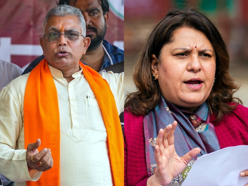 The Election Commission on Wednesday slapped show-cause notices on BJP leader Dilip Ghosh and Congress leader Supriya Shrinate for their offensive remarks against West Bengal Chief Minister Mamata Banerjee and Kangana Ranaut respectively.