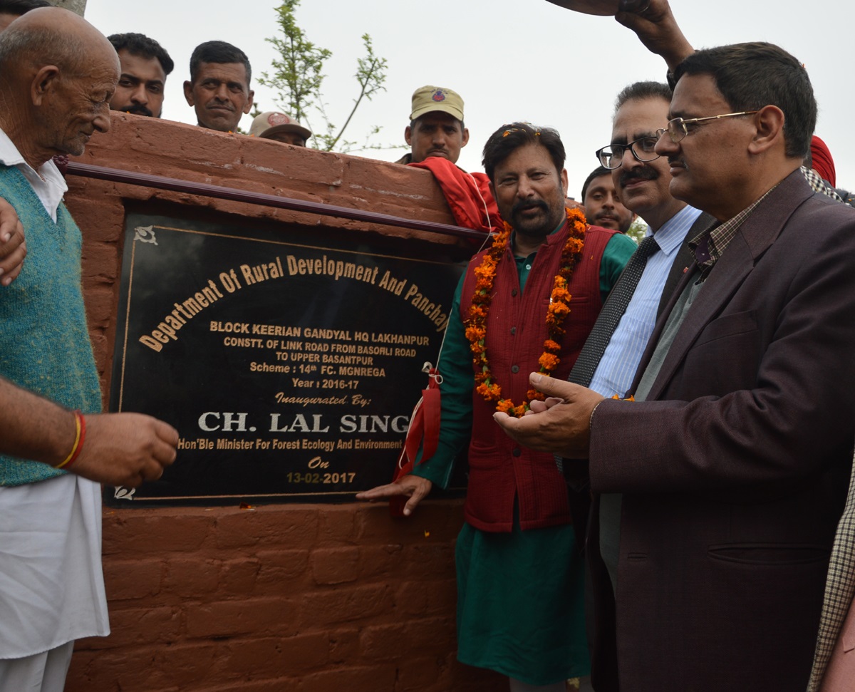 Speaking on the occasion Chaudhary Lal Singh said that development is a continuous process and it requires synergy between people and the authorities. Minister laid stress on creating durable rural assets so that benefits can be provided to the maximum populace. He further said that to bring about a radical change in society, education and economic empowerment are two areas which need maximum thrust.