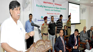 The Minister was addressing a National Seminar on “Faculty Development in Higher Education Issues and Challenges” organised jointly by Amar Singh College Srinagar and Government Degree College Vailo Larnoo, Anantnag at Amar Singh College Srinagar.