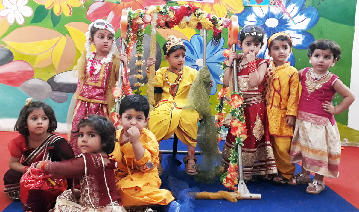 The Modern Montessori International Pre School celebrates Janamashtami with great enthusiasm. The children were dressed up in colourful attires as Lord Krishna and Radha, wearing beautiful smiles on their faces. The Principal, Pragya Gupta, highlighted the importance of Janamashtami. The event started with various performances which included dance performance by Pre Nursery A and B on “Mach Gya Shor”, Skit performance in which kids played different roles of Devaki, Lord Vishnu, Vasudeva which forecast different scenes of Gokul, birth of Lord Krishna, Gopis playing around with Krishna, Dahi Handi was broken by the kids. The Playgroup and Pre Nursery C danced gracefully on the song “Little Krishna” and Kindergarten and Nursery A and B danced rhythmically together on the song “Go Go Govinda”. The Directors of school Bhavna Rohmetra and Sapna Rohmetra congratulated the staff and children for their wonderful performances.