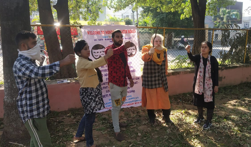 JAMMU, Nov 1: Ek Sath Rangmandal today presented it’s 442nd Monday Theatre with social awareness Nukad ” Ghaatak Plastic Aur Hum ” under its Monday Theatre Series at Green Belt Park, Gandhi Nagar.