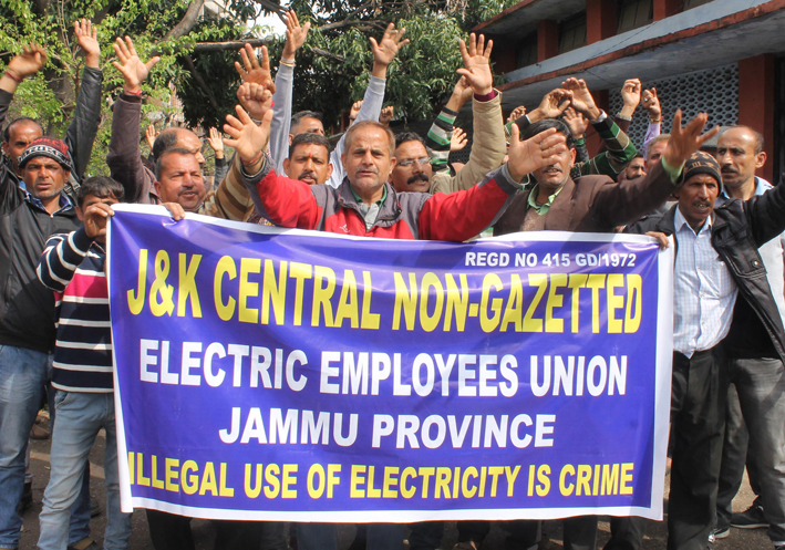 JAMMU, Feb 29: A protest demonstration was held by J&K Central Non Gazetted Electric Employees Union (CNGEEU) in front of Press Club here, today under the leadership of its Jammu district president, Chinlamani Singh Jamwal.