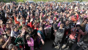 Led by prominent leaders, including N S Jamwal, Ganesh Khajuria, G M Hamdard, Dr Manzoor, Nusrat Beigh and Bhupinder, the demonstrators raised slogans in support of the Deputy Chief Minister Tara Chand, who is holding the Education portfolio.