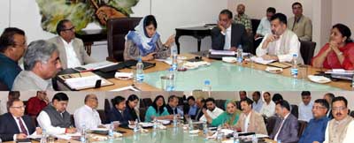 Minister for Agriculture, Ghulam Nabi Lone, Minister for I&C, Chander Parkash, Minister for Finance, Labour & Employment, Dr. Haseeb A. Drabu, Minister for YS&S and Technical Education, Imran Raza Ansari, Minister of State for Education, Culture & Tourism, Priya Sethi, Chief Secretary, B. R. Sharma, Financial Commissioner, P&M, B. B. Vyas and Principal Secretary to the Chief Minister, Navin K. Chaudhary, were also present in the meeting.