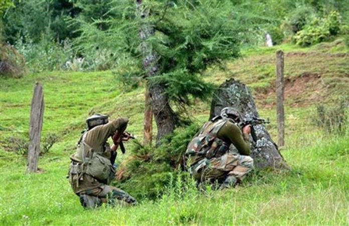 Officials said a few gunshots were heard from the Pathi Nalla Khaned area of Basantgarh when joint search parties of the police and the Army moved deep inside the densely forested area to track down the terrorists.