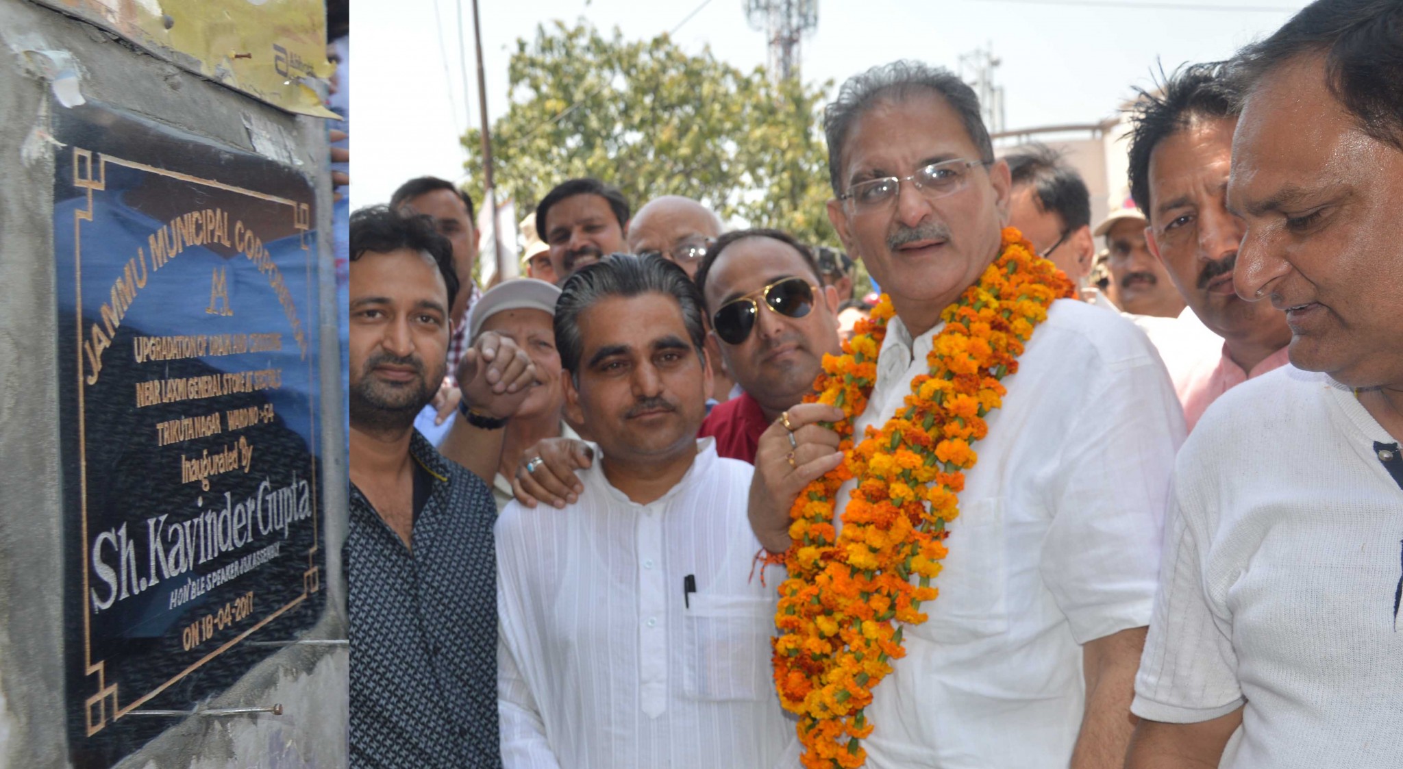 Later the speaker inaugurated multiple works for construction of lane and drain in Gandhi Nagar constituency. The works include construction of drain at Mistri Mohallah being constructed by PWD (R&B) and Drain at Ward No 53 which is being executed by JMC and is scheduled to be completed soon.