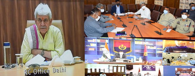 Srinagar, June 25: Lieutenant Governor Manoj Sinha today chaired a series of meetings with members of the Covid Task Force, Deputy Commissioners and SPs to review Covid-19 situation in J&K and directed the senior officials to act swiftly on utilizing the maximum capacity for testing and vaccination.