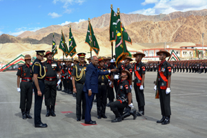 Addressing troops after presenting President’s Colours to Ladakh Scouts and Regimental Centres in Leh this morning, the President referred to 1947-48, 1965 and 1971 wars with Pakistan, 1965 war with China, `Operation Meghdoot’ in Siachen Glacier and several other such operations and said the troops have always come out with flying colours defending the country with high morale.