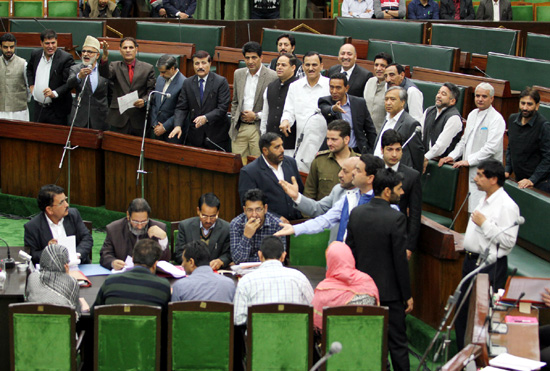 Though Speaker, Kavinder Gupta and Law and Parliamentary Affairs Minister, Basharat Bukhari, tried to convince the Opposition MLAs as well as those of PDP that Government would apprise the House about latest development but their efforts failed to bring order.
