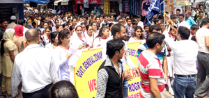 Students took out the rally from Nai Basti ground to Old Bazaar, Chowk Chabutra, Main Bazaar, Bus Stand and then back to Nai Basti ground.