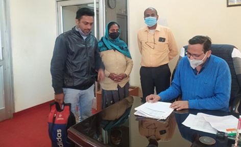 Veena Devi appeared from Kangra, H P and requested that she has been visiting this Office earlier also. Since exact date of birth of her late husband Hans Raj was not available on record, Rizwan Uddin, P F Commissioner advised to send a letter along with copy of establishment’s (M/s Shalimar Cattle Feed) records and. Accordingly pension claim, (death case) was processed on priority on 10.2.2022.