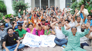 Erstwhile Doda migrants staging protest on Thursday.