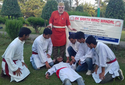 ESRM artists presenting a nukkad at Gole Market park in Gandhi Nagar, Jammu.