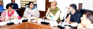 Minister of State for Horticulture Priya Sethi, Vice Chairperson State Horticulture Development Board Abdul Salam Reshi, Secretary Horticulture Manzoor Ahmad Lone, Director Horticulture Jammu Anuradha Gupta, Director Horticulture Kashmir Mohammad Hussain Mir, Director Horticulture Planning & Marketing Manzoor Ahmad Qadiri, Director Finance Horticulture P.S Rakwal, Director Law Enforcement Susheel Sahni, Joint Director Horticulture Jammu Tarvinder Singh, Joint Director Horticulture Kashmir Lokesh Kumar Bali, DDs, CHOs, DHOs, SMSs and other district officers from concerned departments were present in the meeting.