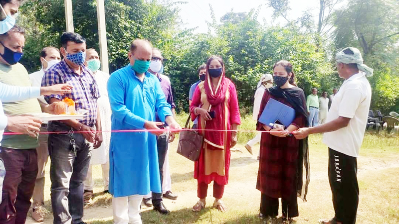 Ex-Minister and BJP general secretary, Dr D.K Manyal laying foundation stone of Community Hall at Purmandal on Thursday. -Excelsior/Badyal
