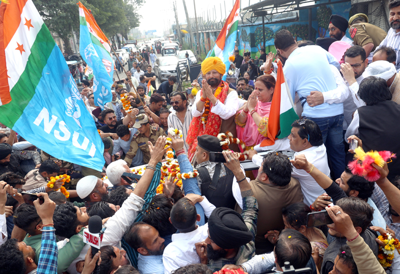 Ex-MP Ch. Lal Singh being received by Cong workers and his supporters outside Jammu airport on Thursday. -Excelsior/Rakesh By Daily Excelsior - March 21, 2024 Share FacebookTwitterWhatsAppPinterestLinkedinCopy URLTelegramEmailTumblrReddItPrintKoo Ex-MP Ch. Lal Singh being received by Cong workers and his supporters outside Jammu airport on Thursday. -Excelsior/Rakesh Ex-MP Ch. Lal Singh being received by Cong workers and his supporters outside Jammu airport on Thursday. -Excelsior/Rakesh Follow our WhatsApp channel