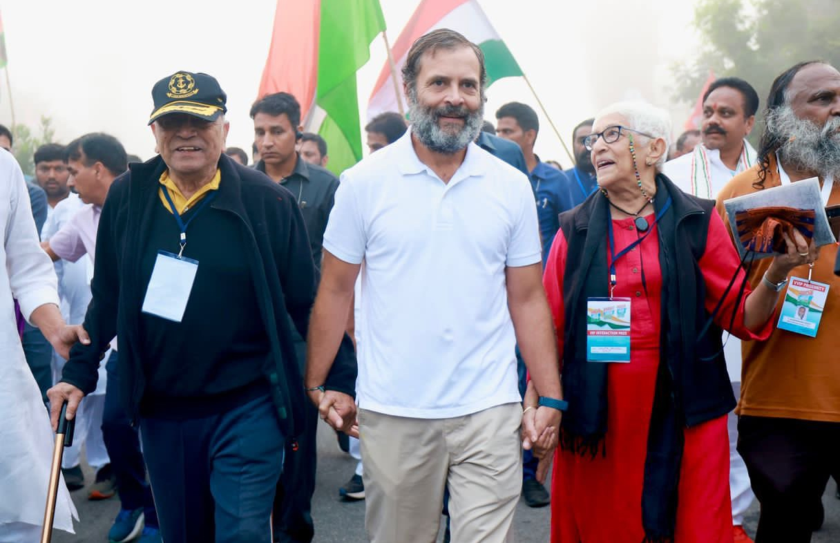 “Admiral Ramdas, former Chief of Naval Staff, who at 89 continues to be an indefatigable campaigner for public causes, along with his wife Lalita Ramdas, herself the daughter of Admiral Katari, 1st Indian Chief of Naval Staff, walked with @RahulGandhi on Day 57 of #BharatJodoYatra,” AICC General Secretary, in-charge, Communications, Jairam Ramesh, tweeted.
