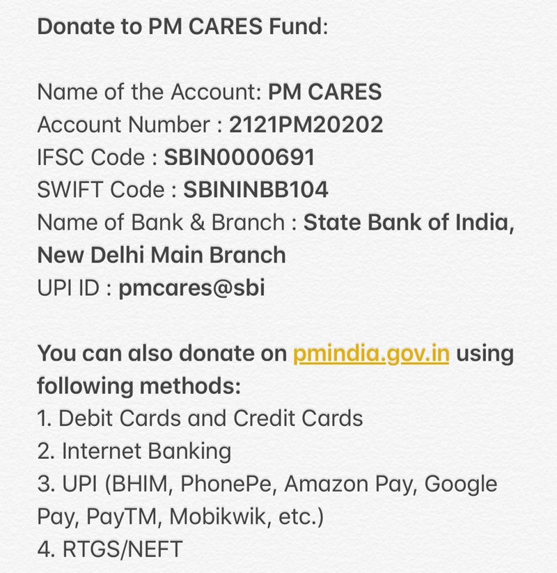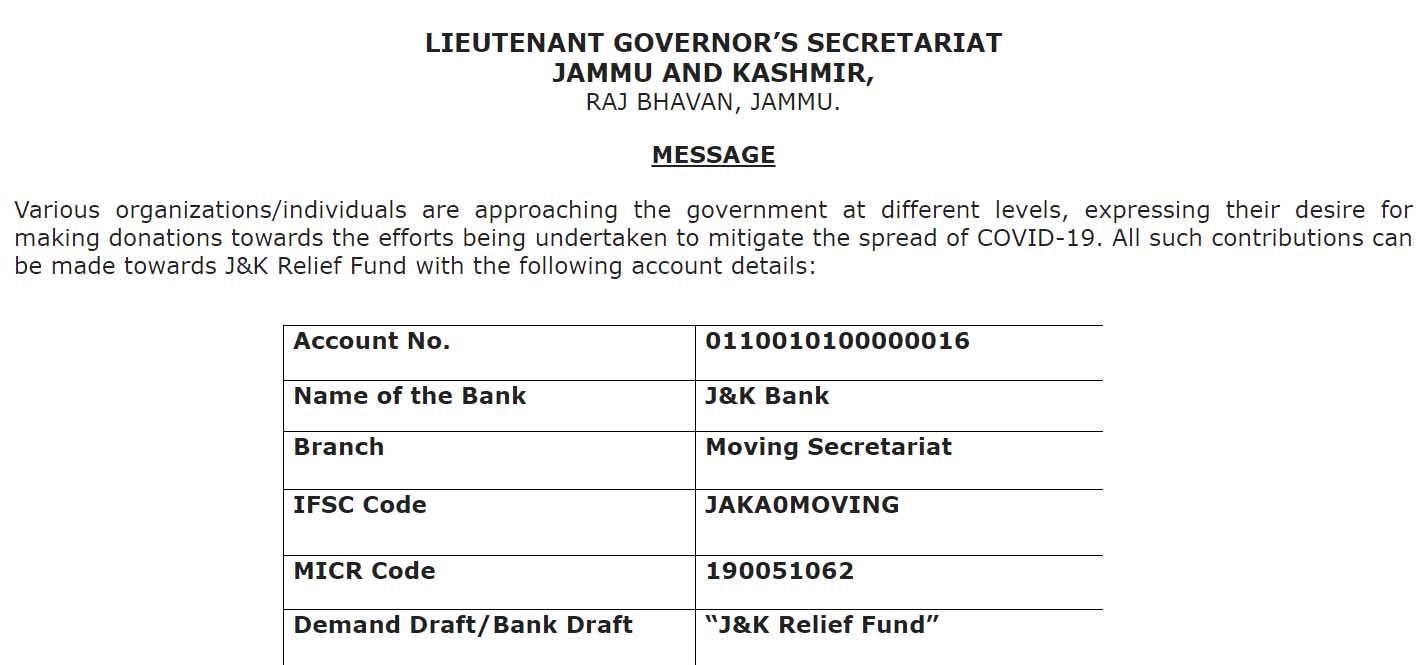 The people desirous of helping can directly transfer to the following bank accounts of J&K Relief Fund /PM CARES FUND