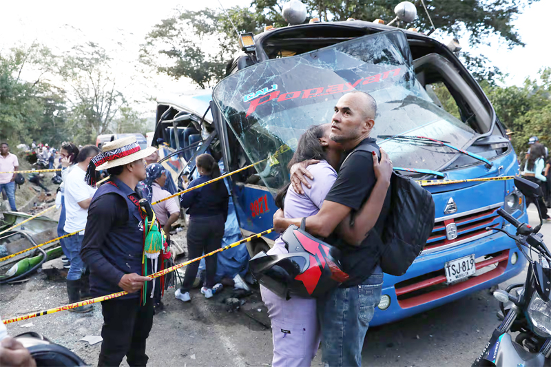 BAGOTA (Colombia), Apr 26: An explosive device killed 13 people travelling on a bus in southwestern Colombia on Saturday, an attack the country’s army chief described as a “terrorist act” that also left at least 38 injured as violence linked to drug trafficking in the region escalates.
