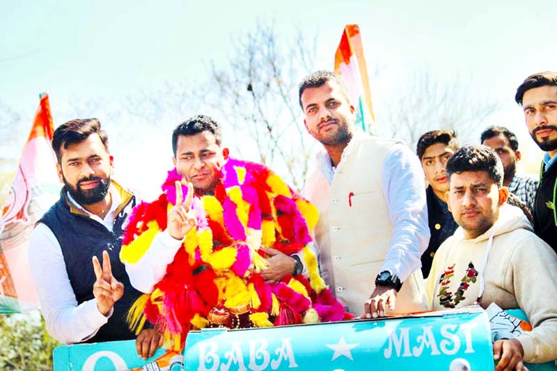 He was profusely garlanded and mounted on an open decorated vehicle. The youth were shouting party slogans and also slogans in his praise and the party leaders. The reception rally passed through Muradpur , Salani Bridge, Mandi Chowk and finally culminated at Press Club, Rajouri.